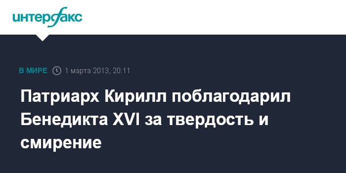 Москва. 1 марта. INTERFAX.RU - Патриарх Московский и всея Руси Кирилл поблагодарил папу Бенедикта XVI, ушедшего накануне в отставку, за бескомпромиссность в вопросах веры и пожелал ему крепости сил, сообщает патриаршая пресс-служба.