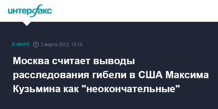 Москва считает выводы расследования гибели в США Максима Кузьмина как "неокончательные"