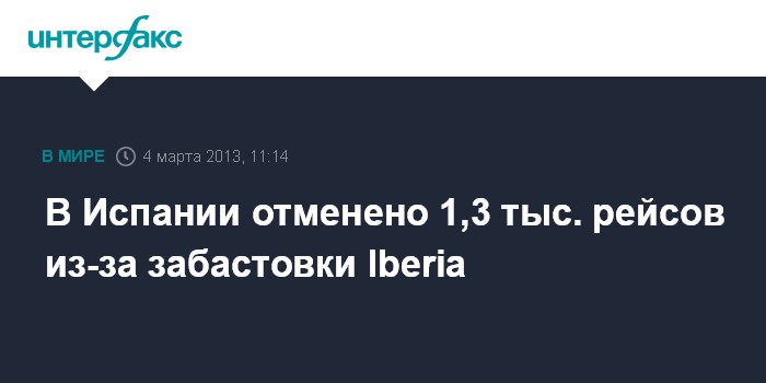 Новая забастовка уже привела к отмене 1,3 тыс. авиарейсов - с понедельника по пятницу отменен 431 рейс авиакомпании Iberia, а также 850 рейсов компаний Iberia Express, Air Nostrum и Vueling.
