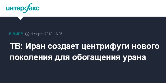Тегеран. 4 марта. INTERFAX.RU - Иран строит не менее трех тысяч центрифуг нового поколения для обогащения урана, сообщил в понедельник канал Press TV.