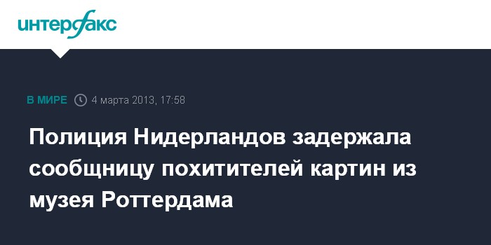 Полиция Нидерландов задержала сообщницу похитителей картин из музея Роттердама