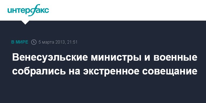Каракас. 5 марта. INTERFAX.RU - Члены правительства Венесуэлы и военачальники проводят во вторник совещание в президентском дворце в Каракасе, сообщают венесуэльские государственные СМИ.