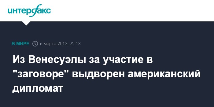 Каракас. 5 марта. INTEERFAX.RU - Власти Венесуэлы выдворили со своей территории американского дипломата, пытавшегося дестабилизировать ситуацию в стране, заявил во вторник венесуэльский вице-президент Николас Мадуро.