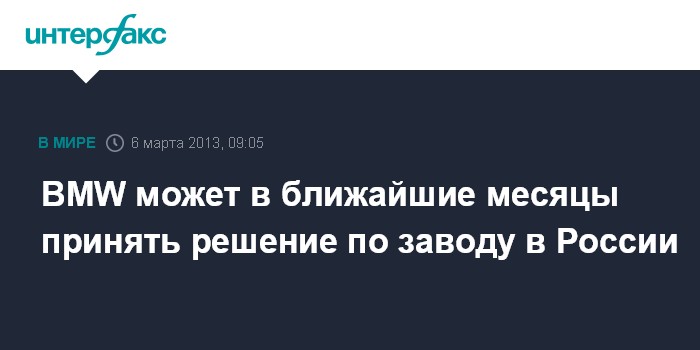 BMW может в ближайшие месяцы принять решение по заводу в России