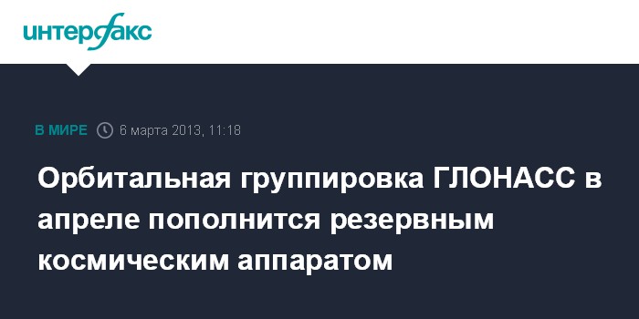 Ганновер (Германия). 6 марта. INTERFAX.RU - В 2013 г. для поддержания полноценной орбитальной группировки ГЛОНАСС и ее развития планируется осуществить три космических запуска, ближайший из них - 26 апреля, сообщил генеральный конструктор и генеральный директор ОАО "Информационные спутниковые системы" имени Решетнева" (ИСС, Железногорск, Красноярский край) Николай Тестоедов.