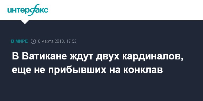 Рим. 6 марта. INTERFAX.RU - Только двое из 115 кардиналов, которым предстоит принять участие в конклаве, еще не прибыли в Ватикан, сообщают в среду итальянские СМИ. По их данным, речь идет о кардиналах из Польши и Вьетнама. Ожидается, что один из них прибудет позже в среду, а второй - в четверг.