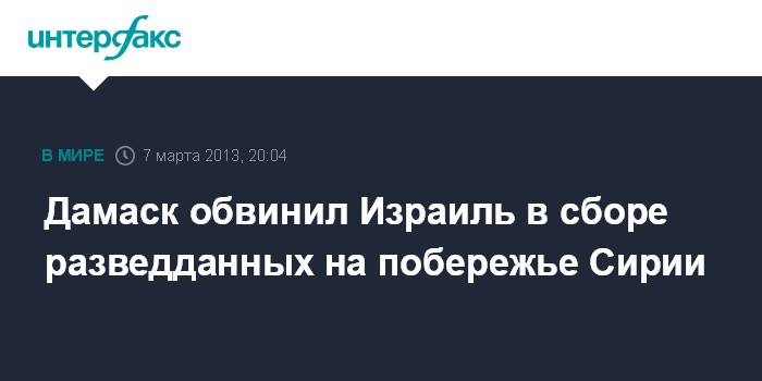 Бейрут. 7 марта. INTERFAX.RU - Сирийские власти обвинили Израиль в сборе разведданных в прибрежной зоне Сирии, сообщает государственное агентство САНА.