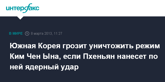 Сеул. 8 марта. INTERFAX.RU - Если Пхеньян нанесет превентивный ядерный удар по Южной Корее, действующий в КНДР режим исчезнет с лица Земли, говорится в коммюнике, обнародованном министерством обороны Южной Кореи в пятницу. "Если Северная Корея нанесет ядерный удар по Южной Корее, режим Ким Чен Ына будет стерт с лица Земли", - говорится в сообщении южнокорейского оборонного ведомства.