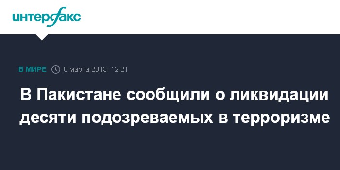 Исламабад. 8 марта. INTERFAX.RU - В военном командовании Пакистана сообщили, что в результате воздушной бомбардировки в ночь на пятницу уничтожены десять подозреваемых в терроризме лиц, сообщило ЭФЭ. По данным источника в военном руководстве страны, таков итог двух воздушных операций, проведенных пакистанскими войсками на северо-востоке Пакистана.