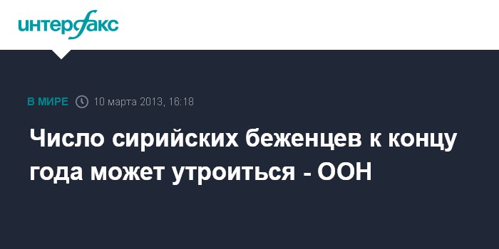 Стамбул. 10 марта. INTERFAX.RU - Количество беженцев из Сирии увеличится в два или три раза к концу 2013 года, если темпы бегства жителей страны не изменятся, заявил в воскресенье верховный комиссар ООН по делам беженцев Антонио Гутьеррес. "Если эскалация потока беженцев продолжится, к концу года их количество значительно увеличится, в два или три раза по сравнению с текущими показателями", - сказал А.Гуттереш в ходе визита в Анкару.