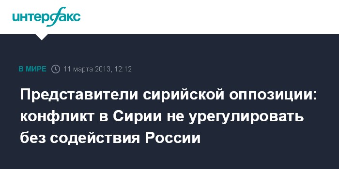 Представители сирийской оппозиции: конфликт в Сирии не урегулировать без содействия России