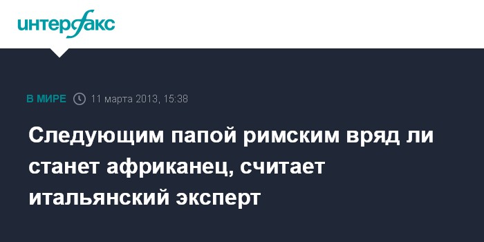 Рим. 11 марта. INTERFAX.RU - Избрание африканца на пост предстоятеля римской католической церкви маловероятно, заявил "Интерфаксу" известный итальянский эксперт по Ватикану Марко Тозатти.