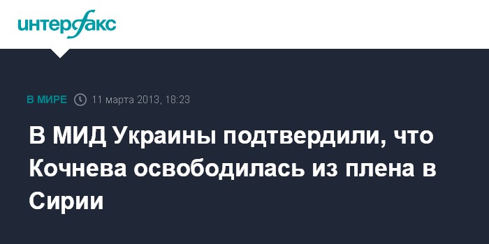 Киев. 11 марта. INTERFAX.RU - В министерстве иностранных дел Украины подтверждают, что украинка Анхар Кочнева, которая находилась в плену у сирийских повстанцев, находится на свободе.