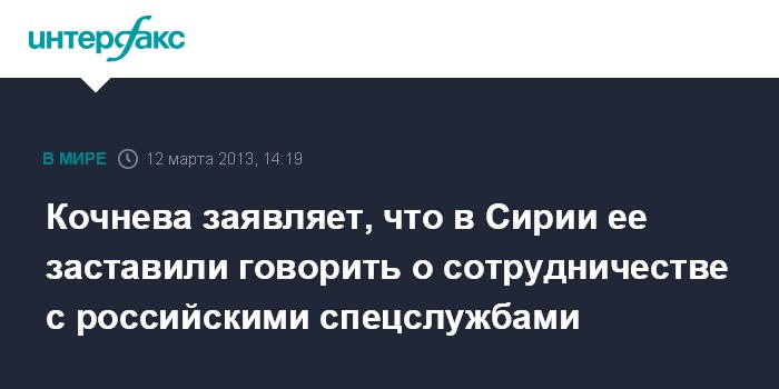 Отвечая на вопрос о видеоролике, где Кочнева призналась, что работает на российские спецслужбы, она сказала: "Меня заставляли говорить, что я прибыла в Сирию по заданию российской разведки, что я тут главный переводчик министерства обороны. Заставляли угрозами".