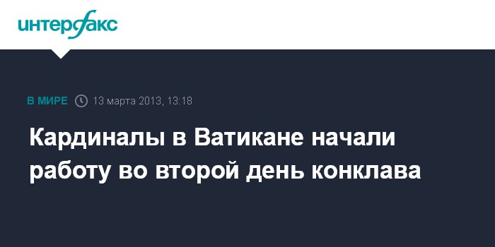 Рим. 13 марта. INTERFAX.RU - Кардиналы-выборщики приступили в среду к работе в рамках второго дня конклава, сообщает итальянское телевидение.