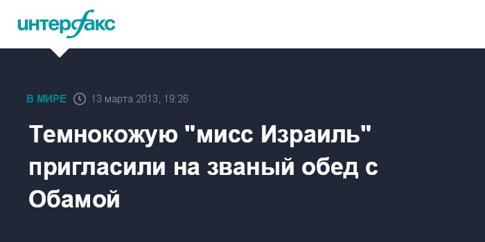 Лондон. 13 марта. INTERFAX.RU - Первая темнокожая "мисс Израиль" будет присутствовать на званом обеде, который израильская сторона даст в честь президента США Барака Обамы в ходе его визита в страну на будущей неделе.