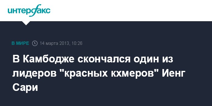 Бангкок. 14 марта. INTERFAX.RU - Бывший министр иностранных дел режима "красных кхмеров" Иенг Сари, обвиняемый в военных преступлениях, скончался в больнице в возрасте 87 лет, сообщил в четверг представитель международного суда ООН в Камбодже Ларс Ольсен.