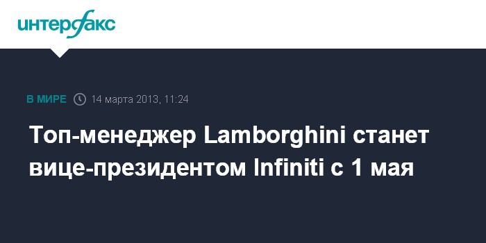 Топ-менеджер Lamborghini станет вице-президентом Infiniti с 1 мая