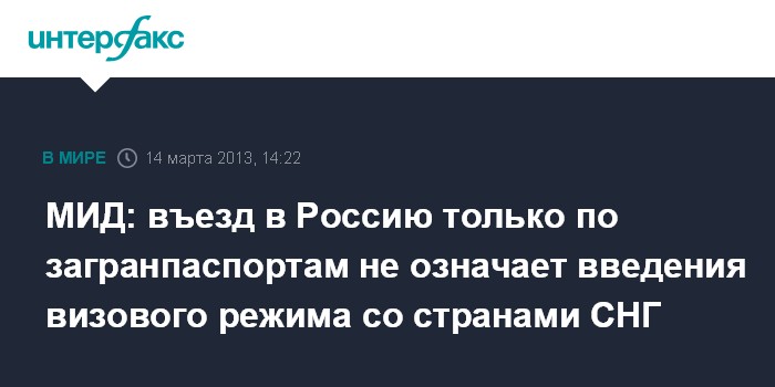 МИД: въезд в Россию только по загранпаспортам не означает введения визового режима со странами СНГ