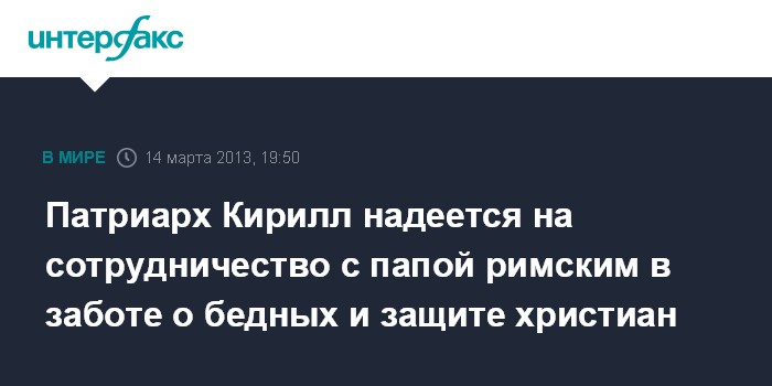 Патриарх Кирилл надеется на сотрудничество с папой римским в заботе о бедных и защите христиан