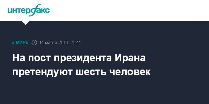 Тегеран. 14 марта. INTERFAX.RU - Уже шесть человек намерены баллотироваться на пост главы Исламской республики Иран, сообщил в четверг иранский англоязычный телеканал "Пресс-ТВ".