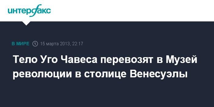 Каракас. 15 марта. INTERFAX.RU - Останки скончавшегося президента Венесуэлы Уго Чавеса перевозят из военной академии в Музей революции в столице Каракасе, сообщает в пятницу веб-сайт местной газеты "Насьональ".