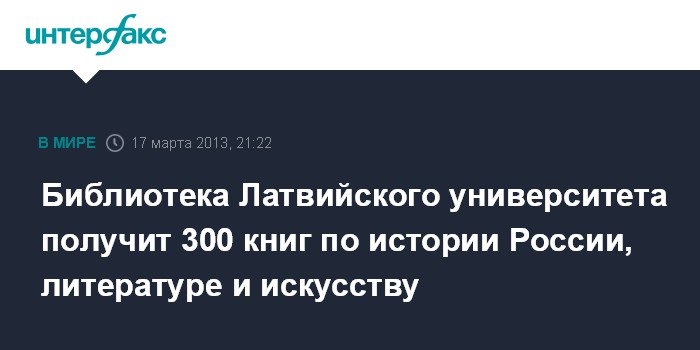 Библиотека Латвийского университета получит 300 книг по истории России, литературе и искусству