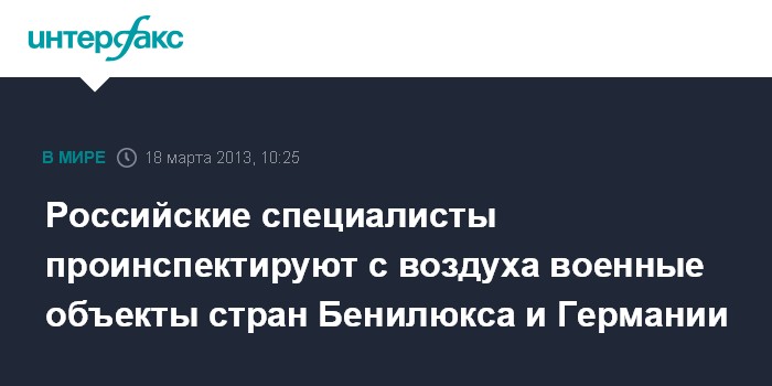 Российские специалисты проинспектируют с воздуха военные объекты стран Бенилюкса и Германии