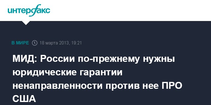 МИД: России по-прежнему нужны юридические гарантии ненаправленности против нее ПРО США