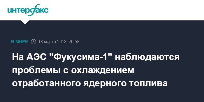 Токио. 18 марта. INTERFAX.RU - Перебои с электроснабжением на АЭС "Фукусима-1" вызвали приостановку работы систем охлаждения бассейнов выдержки отработавшего ядерного топлива, сообщила в понедельник Токийская энергетическая компания.