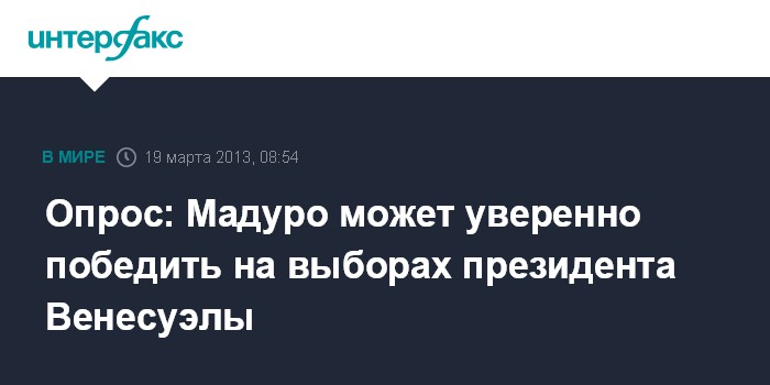 Каракас. 19 марта. INTERFAX.RU - Исполняющий обязанности президента Венесуэлы Николас Мадуро примерно на 14% опережает по популярности в стране лидера оппозиции Энрике Каприлеса, свидетельствуют результаты опроса, проведенного компанией Datanalisis.