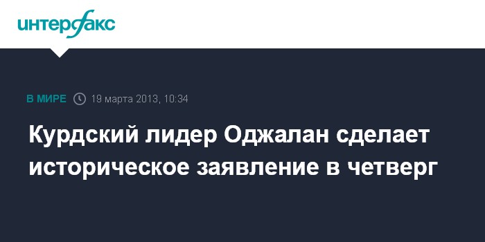Стамбул. 19 марта. INTERFAX.RU - Находящийся в тюрьме лидер Рабочей партии Курдистана (РПК) Абдулла Оджалан заявил, что в четверг выступит с историческим обращением к своим сторонникам, сообщили во вторник турецкие СМИ.