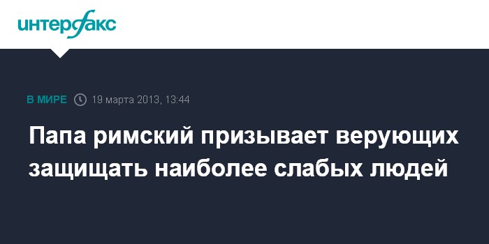Рим. 19 марта. INTERFAX.RU - Верующие во всем мире должны стремиться защищать наиболее слабых и нуждающихся людей, заявил во вторник папа римский Франциск.