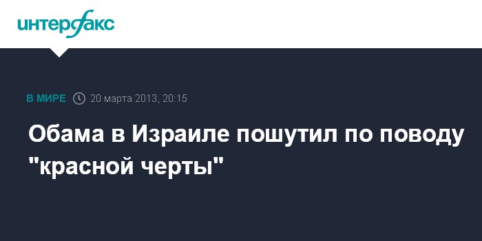 Иерусалим. 20 марта. INTERFAX.RU - Президент США Барак Обама с иронией сказал, что премьер Израиля Биньямин Нетаньяху постоянно напоминает ему о "красной черте", сообщает в среду израильское телевидение.
