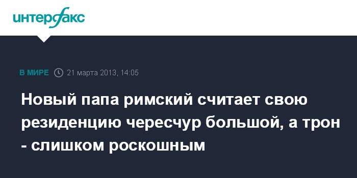 Новый папа римский считает свою резиденцию чересчур большой, а трон - слишком роскошным
