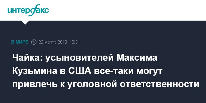 Москва. 22 марта. INTERFAX.RU - Представители американских правоохранительных органов не исключают привлечения к уголовной ответственности усыновителей российского мальчика Максима Кузьмина, если найдутся доказательства совершения ими противоправных действий.
