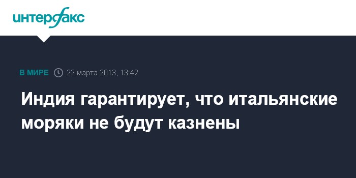 Рим. 22 марта. INTERFAX.RU - Двое итальянских военных моряков, обвиняемых в убийстве индийских рыбаков, не будут приговорены к высшей мере наказания в Индии, заявил глава МИД Италии Джулио Терци итальянской газете La Repubblica.