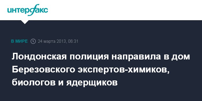 Лондон. 24 марта. ИНТЕРФАКС - По поступающим из Лондона сообщениям СМИ, британская полиция в рамках расследования смерти российского предпринимателя Бориса Березовского направила в его дом экспертов-химиков, биологов и ядерщиков.