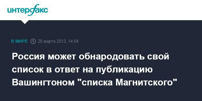 Россия может обнародовать свой список в ответ на публикацию Вашингтоном "списка Магнитского"