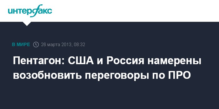 Пентагон: США и Россия намерены возобновить переговоры по ПРО