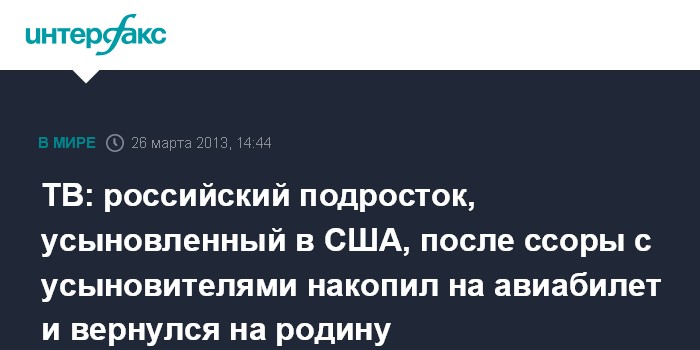 ТВ: российский подросток, усыновленный в США, после ссоры с усыновителями накопил на авиабилет и вернулся на родину
