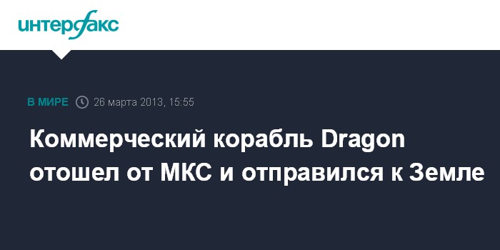 Москва. 26 марта. INTERFAX.RU - Американский коммерческий космический корабль Dragon отделился от канадской руки-манипулятора Международной космической станции и через несколько часов вернется на Землю.