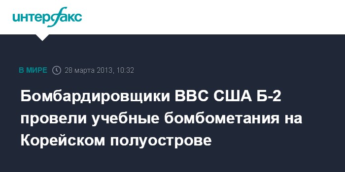 Сеул. 28 марта. INTERFAX.RU - Два стратегических бомбардировщика ВВС США Б-2 в четверг в рамках учений впервые провели бомбометания на территории Южной Кореи, сообщает Объединенное командование вооруженных сил Соединенных Штатов и Южной Кореи.