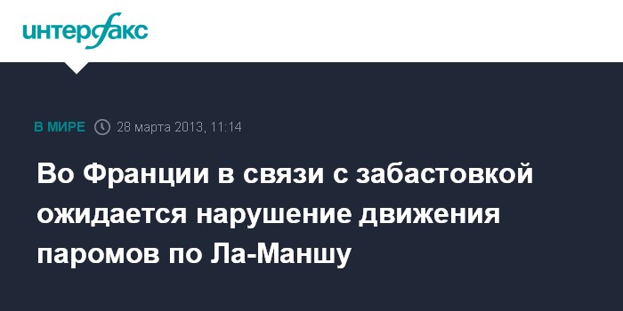 Париж. 28 марта. INTERFAX.RU - Морское сообщение между Францией и Великобританией через пролив Ла-Манш будет нарушено в результате 24-часовой забастовки работников французских портов, пишет в четверг местная газета Le Figaro.