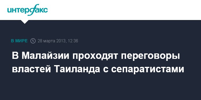 Бангкок. 28 марта. INTERFAX.RU - В столице Малайзии Куала-Лумпуре стартовали однодневные мирные переговоры представителей властей Таиланда и сепаратистского движения "Национальный революционный фронт" (НРФ), сообщил в четверг генеральный секретарь Национального совета безопасности Таиланда Парадорн Паттанатабутр.