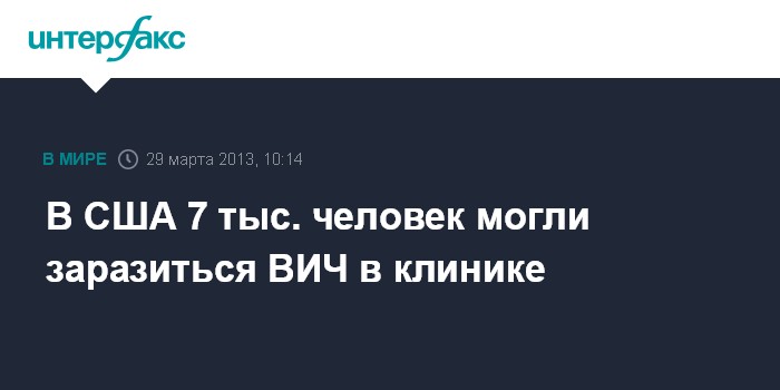 Лондон. 29 марта. INTERFAX.RU - Власти американского города Талса в штате Оклахома обратились к семи тысячам человек, лечившим зубы в местной клинике, с призывом срочно пройти тесты на ВИЧ, а также гепатит C и B, передала BBC в пятницу.