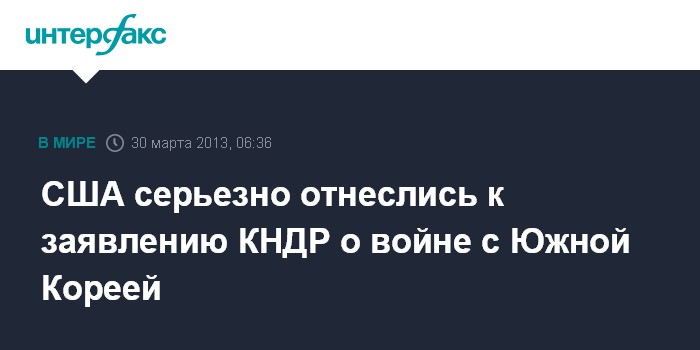 Вашингтон. 30 марта. ИНТЕРФАКС - Американский Белый дом всерьез воспринял заявление Северной Кореи о ее вступлении в стадию войны с Южной Кореей, заявила в ночь на субботу Совета национальной безопасности США Кейтлин Хайден.