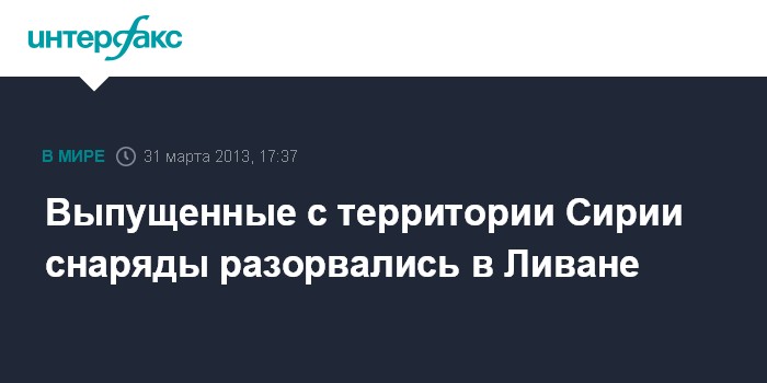 Бейрут. 31 марта. INTERFAX.RU - Снаряды, выпущенные с территории Сирии, попали по пограничным городам в Ливане, сообщает в воскресенье агентство АП.