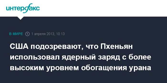 Вашингтон. 1 апреля. INTERFAX.RU - Американские эксперты предполагают, что при проведении ядерного испытания в феврале в КНДР могли тестировать новую версию ядерного заряда с более высоким уровнем обогащения урана, сообщает американская газета The Washington Post.