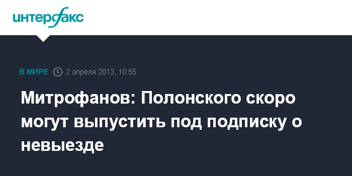 "Решение находится в режиме выхода, и завтра, может быть, послезавтра Полонский, как ожидается, будет освобожден под подписку о невыезде", - сказал Митрофанов.